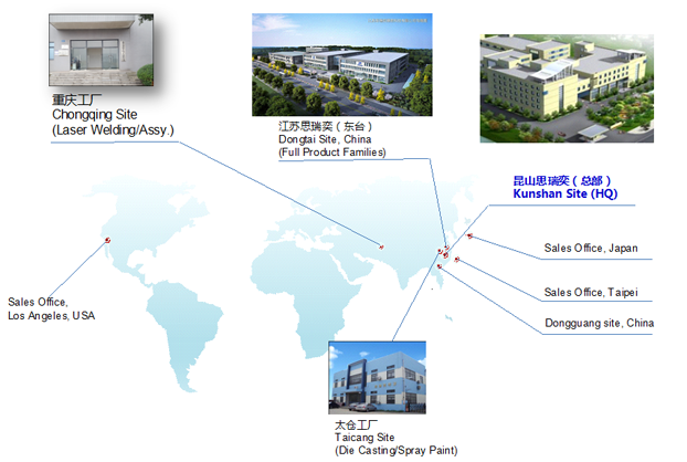思瑞奕電子有限公司成立于2010年10月,注冊(cè)資金7500萬(wàn)人民幣,總部位于江蘇省昆山市,在重慶、江蘇東臺(tái)、江蘇太倉(cāng)設(shè)有分廠,公司于2011年通過(guò)ISO9001/ISO14001認(rèn)證,2013年通過(guò)高新技術(shù)企業(yè)和TS16949(IATF)體系認(rèn)定,2016年先后通過(guò)知識(shí)產(chǎn)權(quán)管理體系認(rèn)證、安全生產(chǎn)標(biāo)準(zhǔn)化認(rèn)證,2017年獲頒江蘇省民營(yíng)科技企業(yè)、2018年先后獲得蘇州市人民政府認(rèn)定企業(yè)技術(shù)中心、科技部認(rèn)定中小型科技企業(yè)、江蘇省最具成長(zhǎng)性高科技企業(yè)、2020年獲得江蘇省人民政府認(rèn)定企業(yè)技術(shù)中心、2021年獲得蘇州市瞪羚計(jì)劃入庫(kù)企業(yè)、江蘇省省級(jí)工程技術(shù)研究中心、江蘇省專(zhuān)精特新中小企業(yè)等榮譽(yù)稱號(hào)......